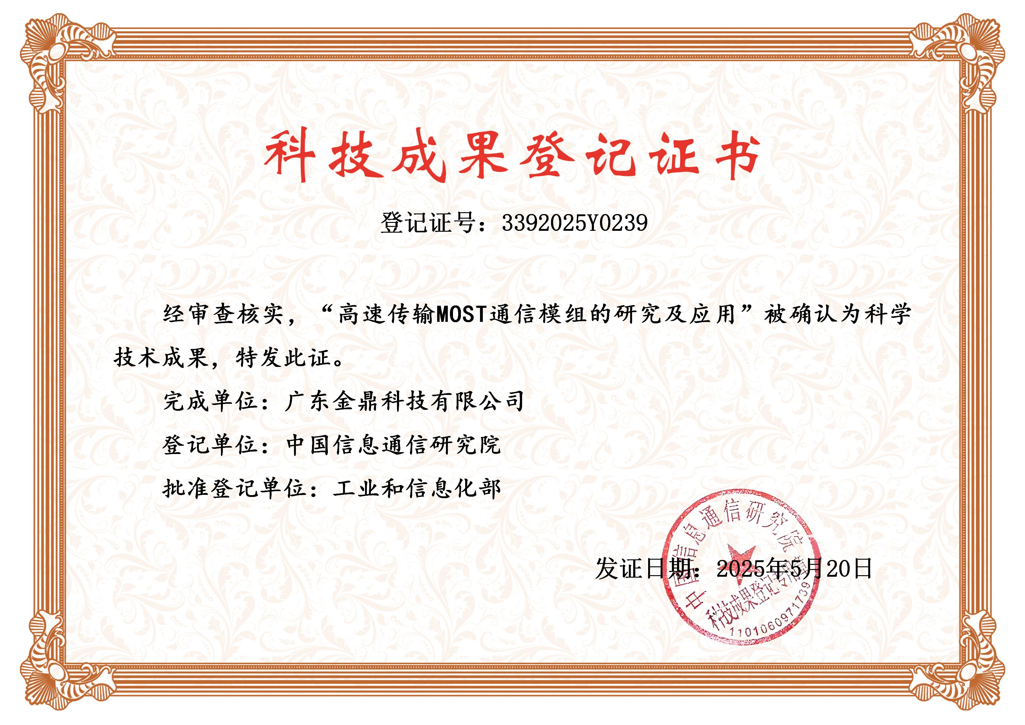 荣获部级科技成果证书