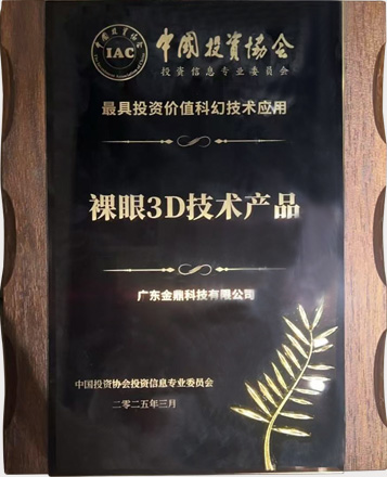 Победа в номинации «Самый ценный инвестиционный проект», присужденный Китайской инвестиционной ассоциацией за технологию 3D-применения без очков