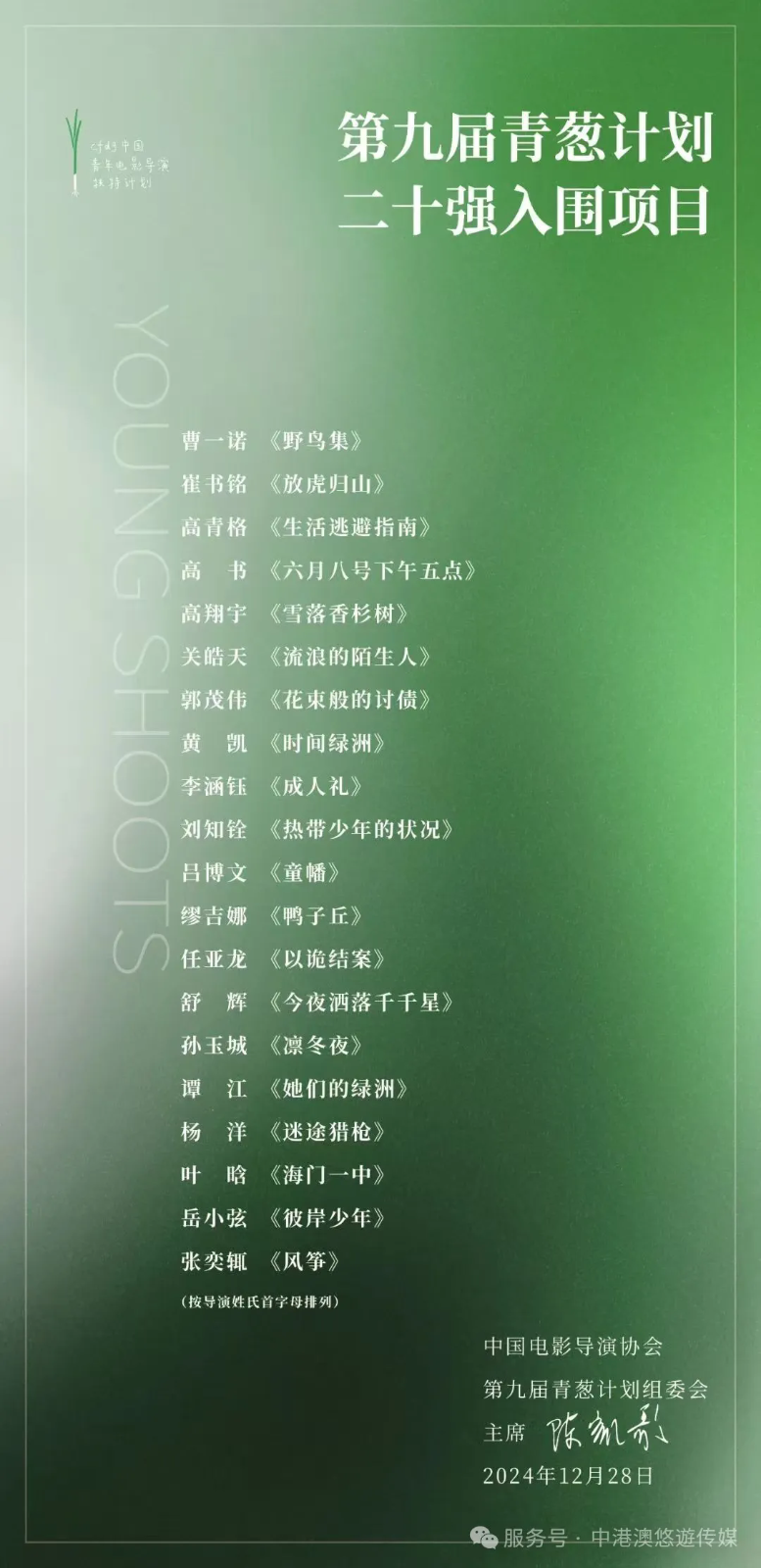 Программа поддержки молодых кинорежиссеров Китая CFDG (и «Программа зеленого лука») — это общественная благотворительная кинодеятельность, проводимая под руководством Национального управления кинематографии и спонсируемая Ассоциацией кинорежиссеров Китая, направленная на привлечение потенциальных молодых режиссеров и поддержку их выдающихся кинопроектов от сценария, производства, инвестиций и финансирования, рекламы и распространения.