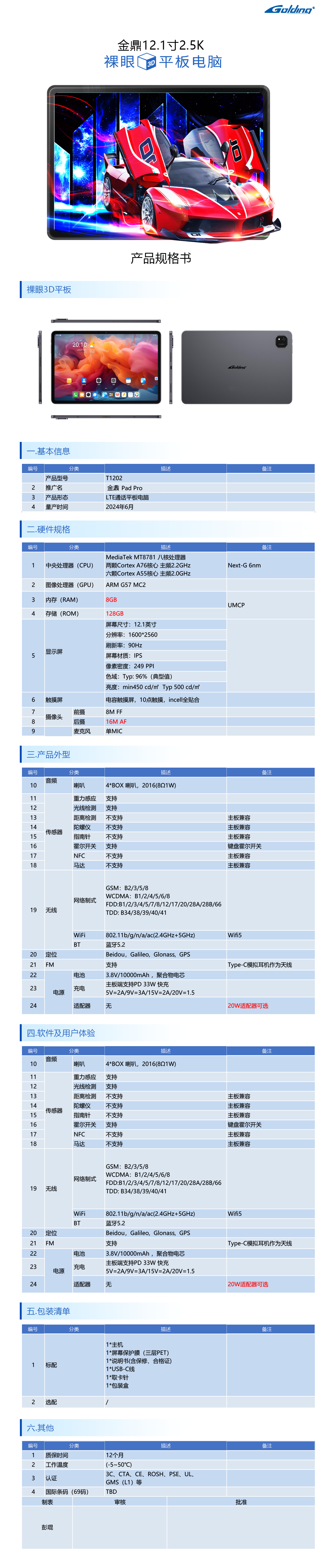 Спецификация 3D продукта с легким полем невооруженным глазом